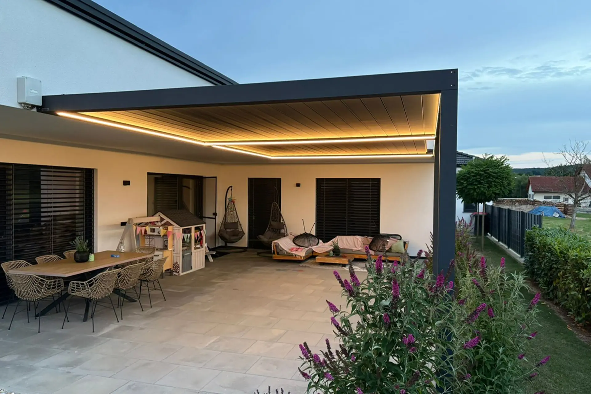 Eine hochwertige Überdachung macht deinen Außenbereich vielseitig nutzbar und schafft mehr Komfort für dein Zuhause. Ob Terrasse, Garten oder Freisitz – mit der passenden Lösung genießt du Schutz vor Sonne, Regen und Wind und verwandelst deinen Außenbereich in eine echte Wohlfühloase.